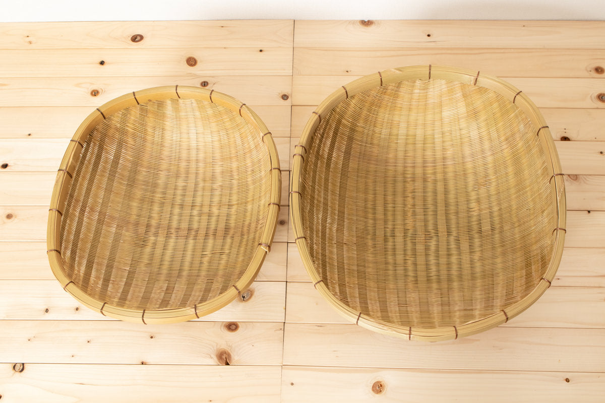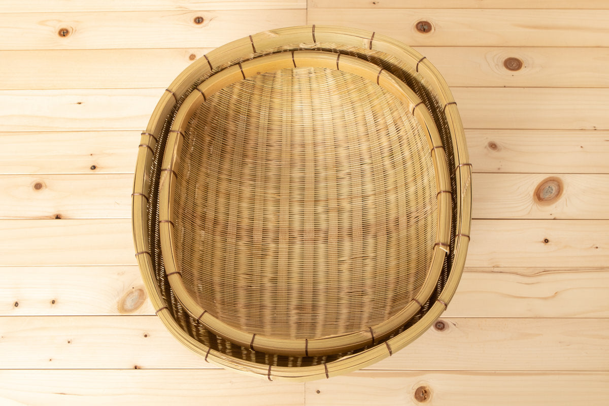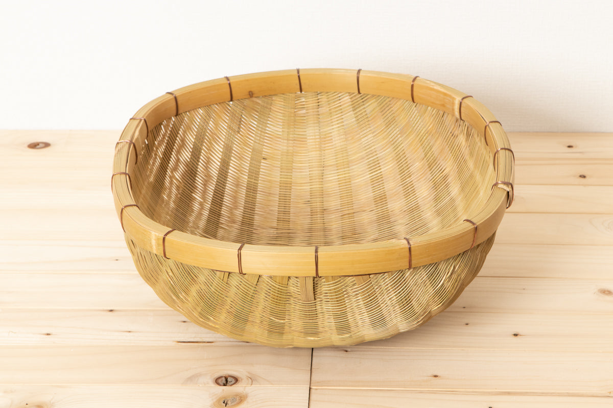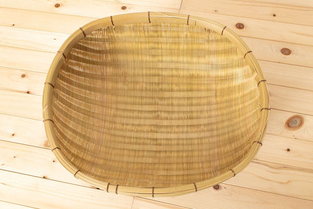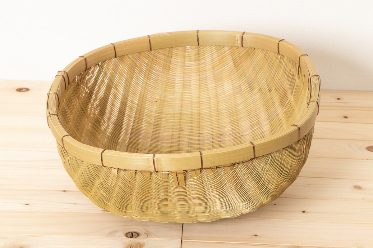 こちらは、産地で「そうき」と呼ばれる深さのあるざるです。富山県では「そうけ」、九州地方では「しょうけ・しょけ」など、少しずつ音が変わりますが、全てざるのことを指しています。