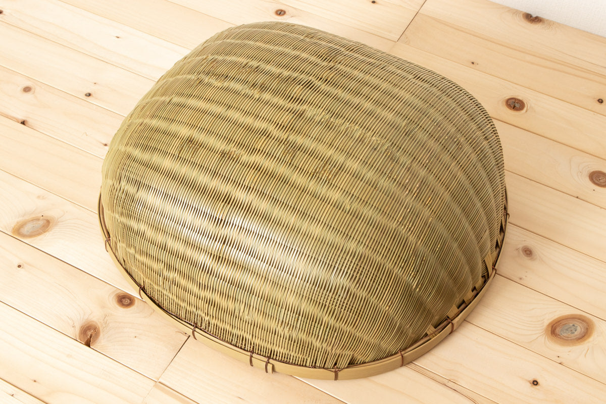 この広島県のそうきは通常の深い丸ざるより、編み目を急な角度で底から即面へ立ち上げています。これが独特な形に見える理由の一つです。 -