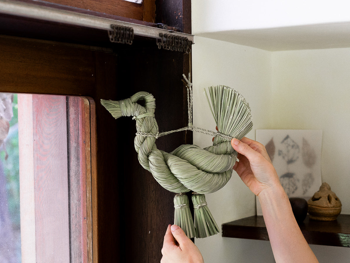 青々とした稲わらが丁寧に綯い-ない-編まれています。
