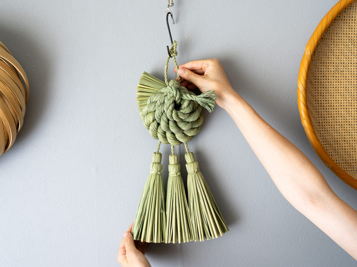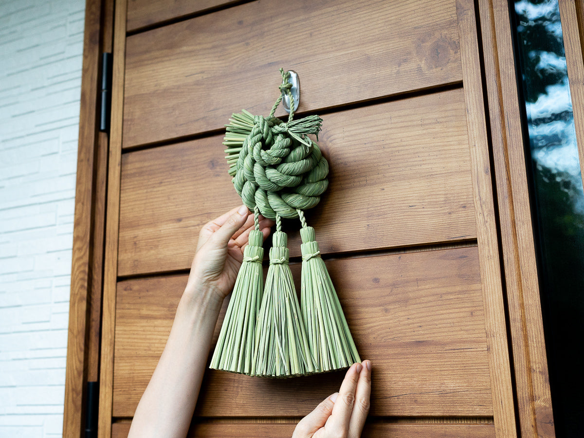 しめかざりの背面は平らになっているので、壁に掛けてもしっくりとおさまります。