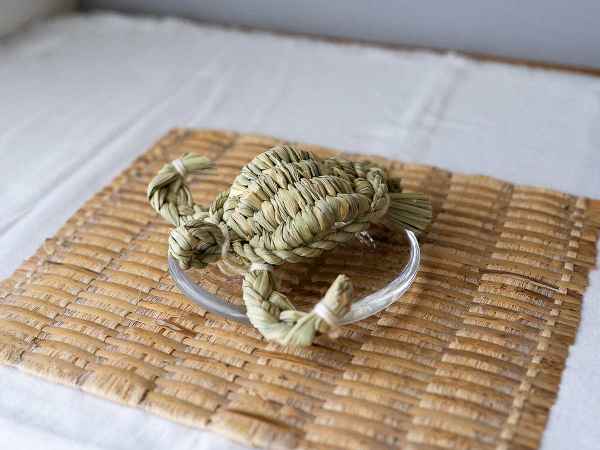 青々とした稲わらが丁寧に綯い-ない-編まれています。