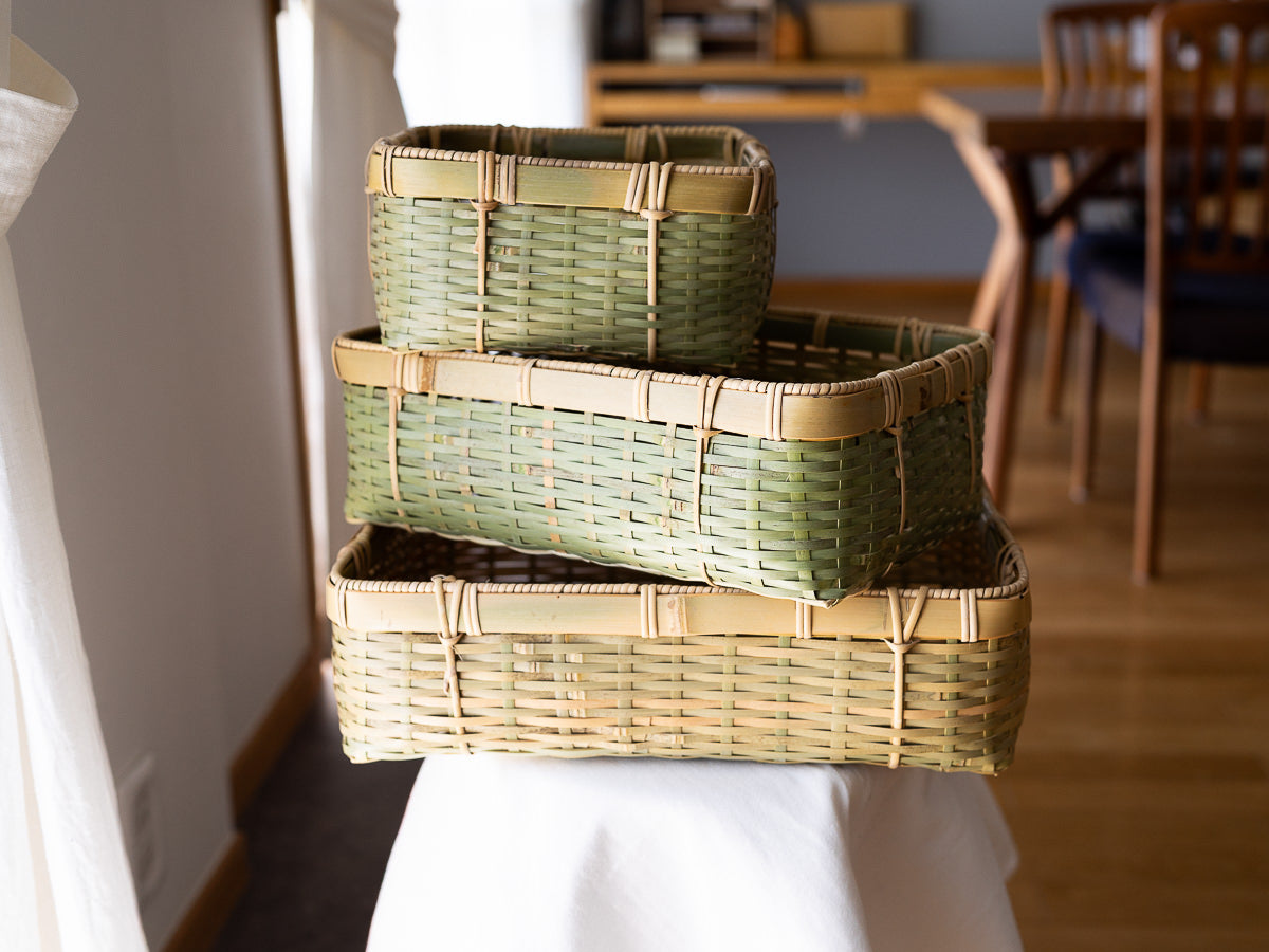 茨城県/真竹(青竹) 塩かご(収納かご) 正方形・長方形 2種 810205