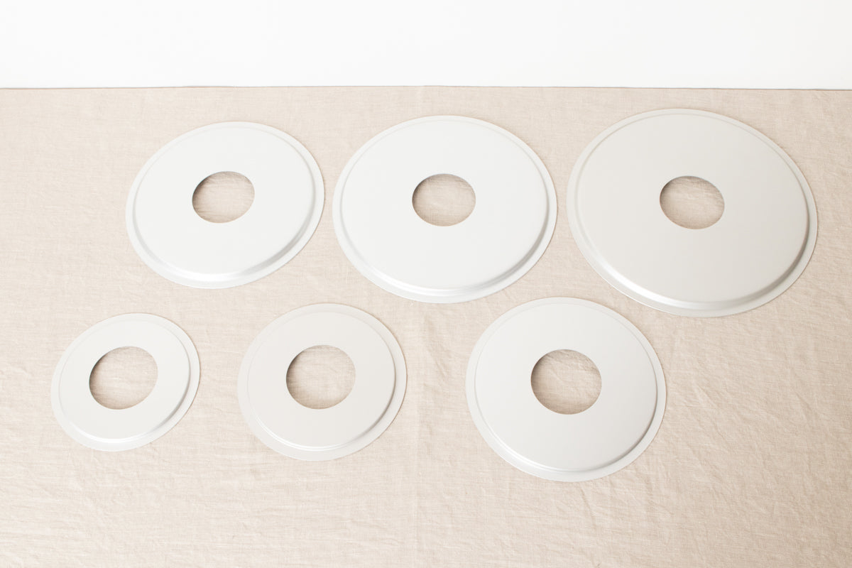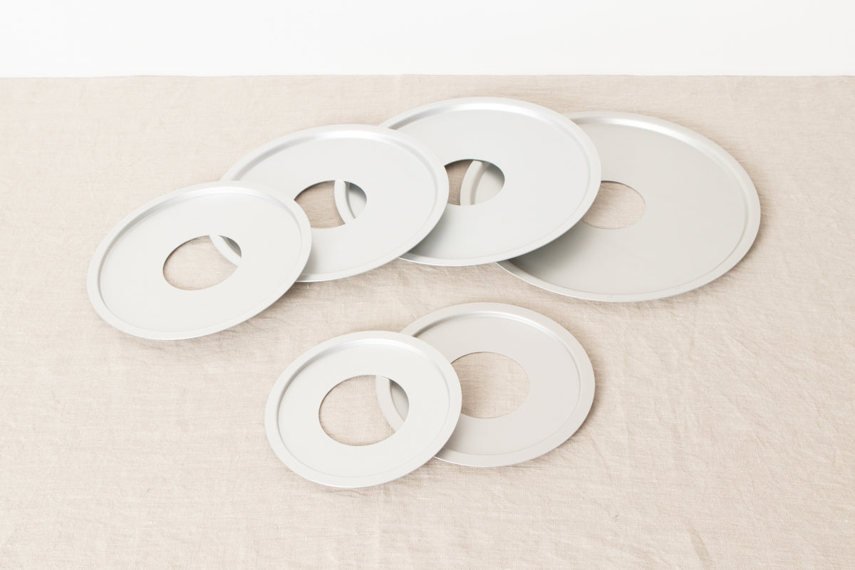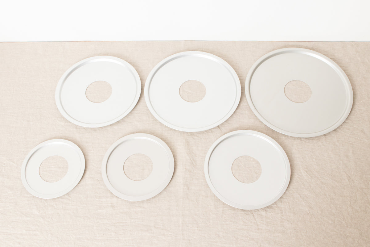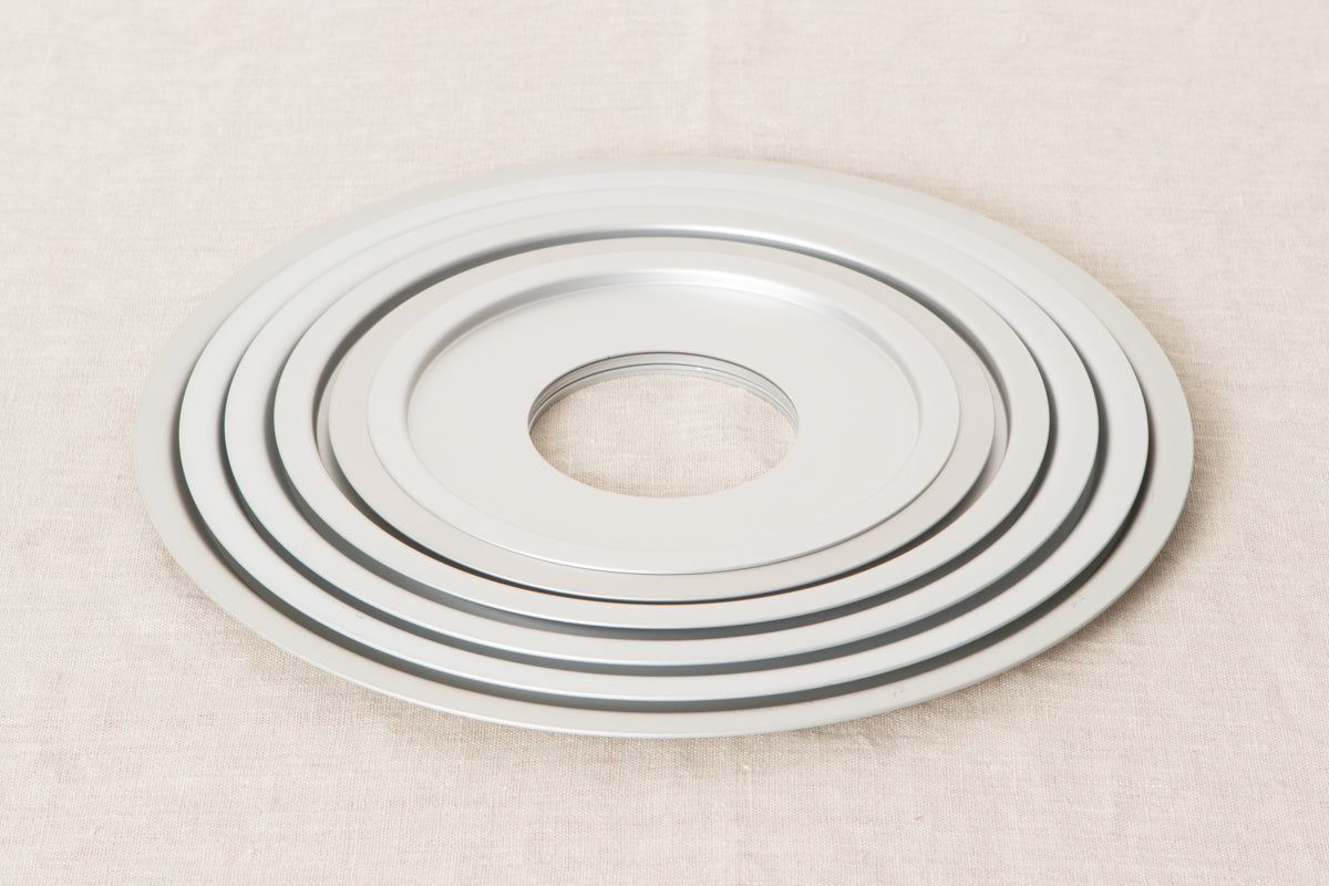 - 18cm:約直径19.5x高さ1cm(凹部外径17cm、穴直径9cm)/80g