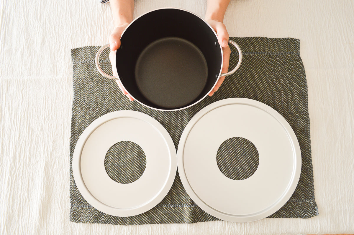 - 鍋と蒸し板 − 鍋の形状と直径サイズが蒸し板に合うかどうか