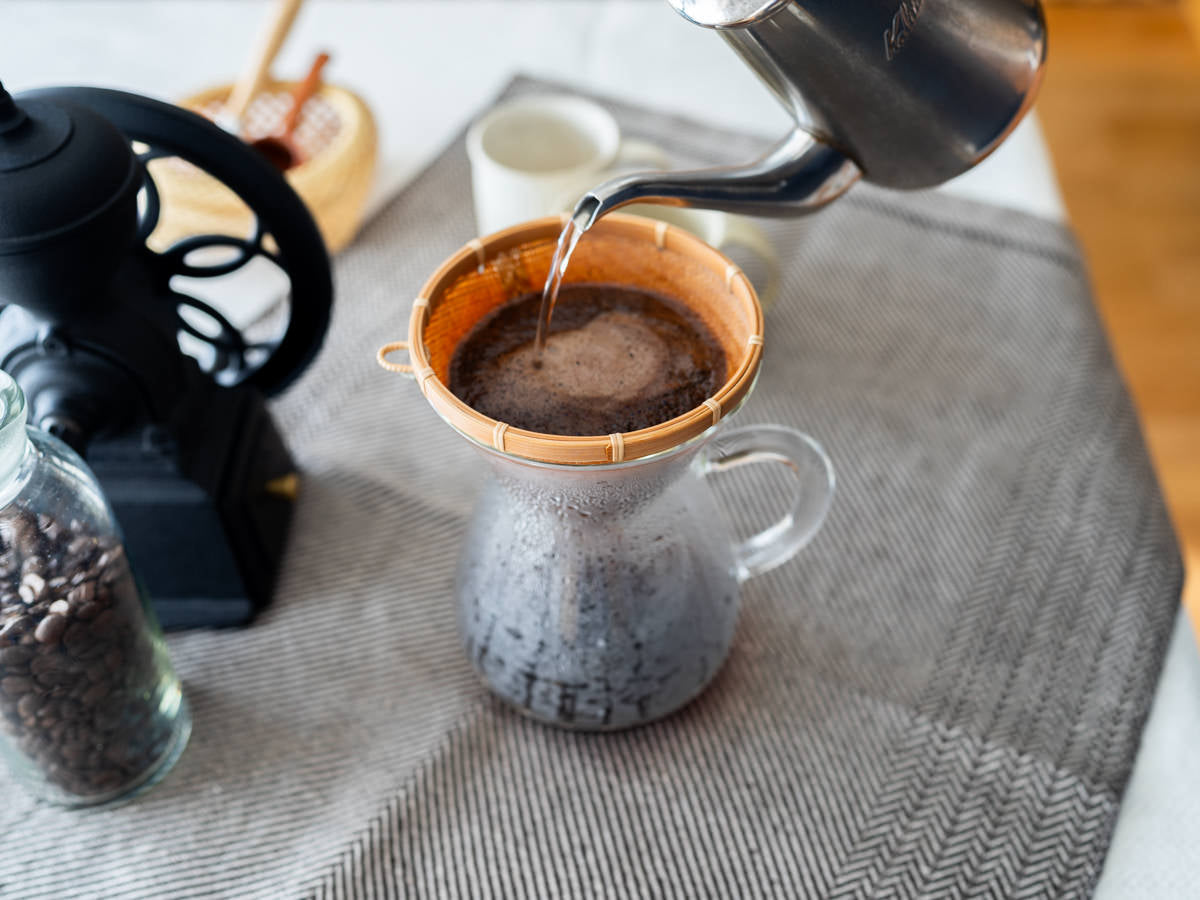 使いはじめは、いちど、ドリッパー全体に熱湯をかけてください。