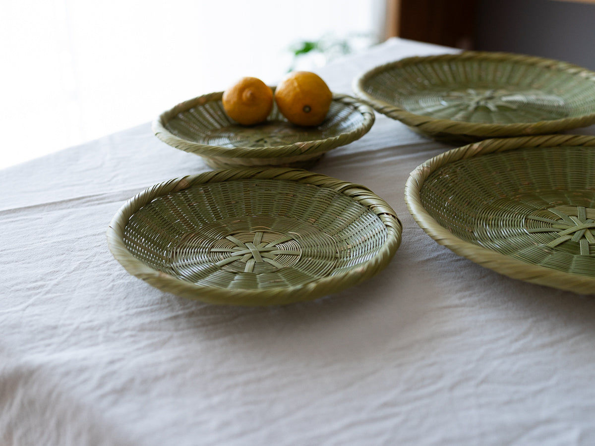大分県/真竹(青竹) 菊底編みそばざる 高台付き 七寸・九寸 2サイズ 110707