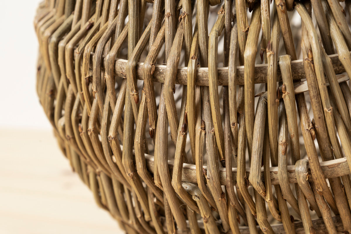 On this page you will find round baskets of barked willow trees, sizes S and L.