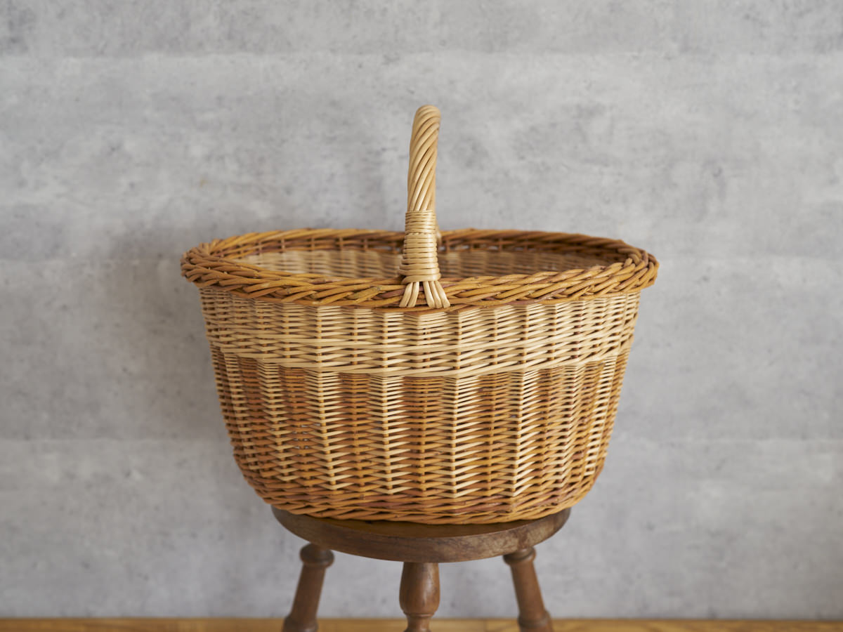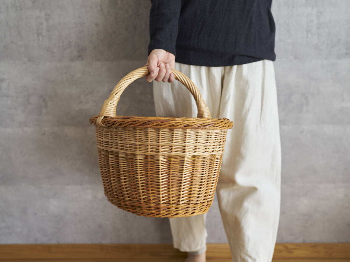 リトアニア/やなぎ シギタスさん 手つきオーバルバスケット 皮つき 140522-3