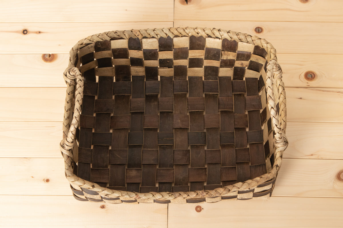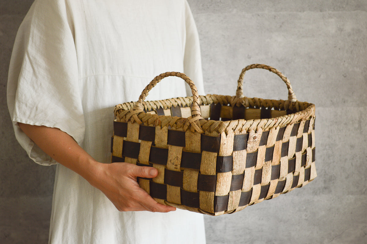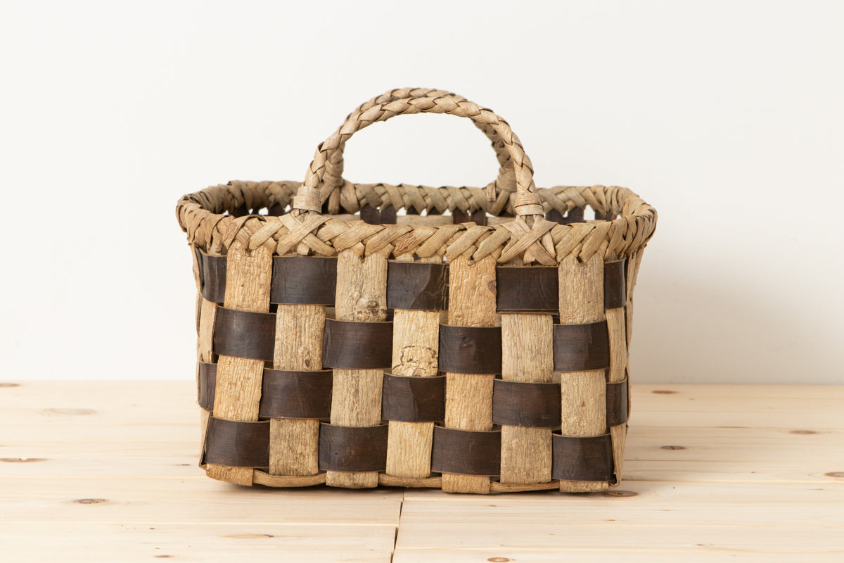 Storage Basket with Handle Large “Checker Light” / Walnut Bark / Iwate-JPN 1510597-1
