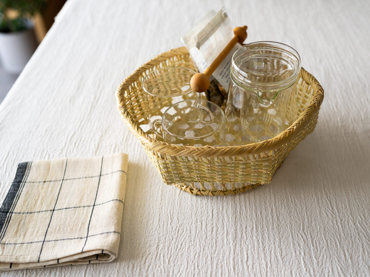 This is a basket handwoven from Suzutake bamboo.