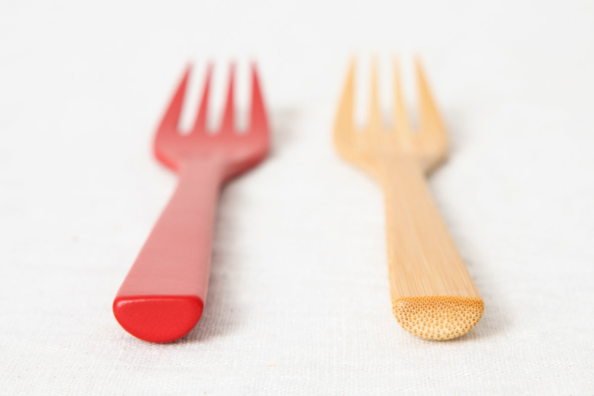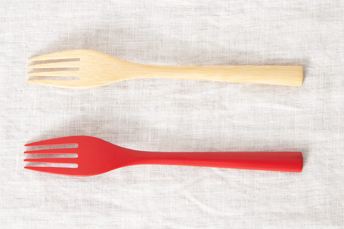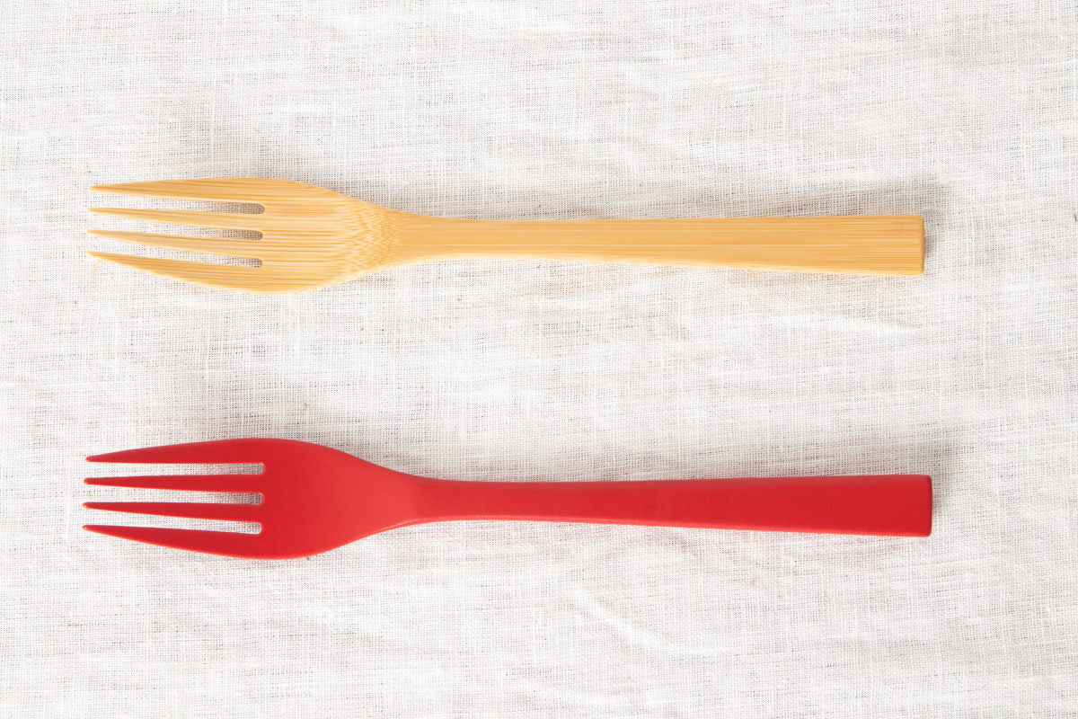while the red has a texture not found in ordinary bamboo cutlery due to its clear color.