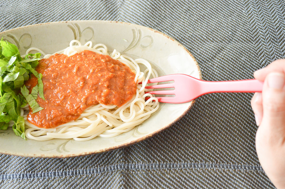 This is a Pasta fork that comes in two colors, “Natural” and “Red”.