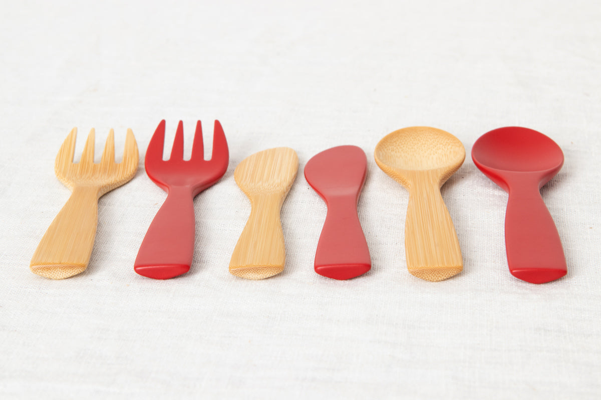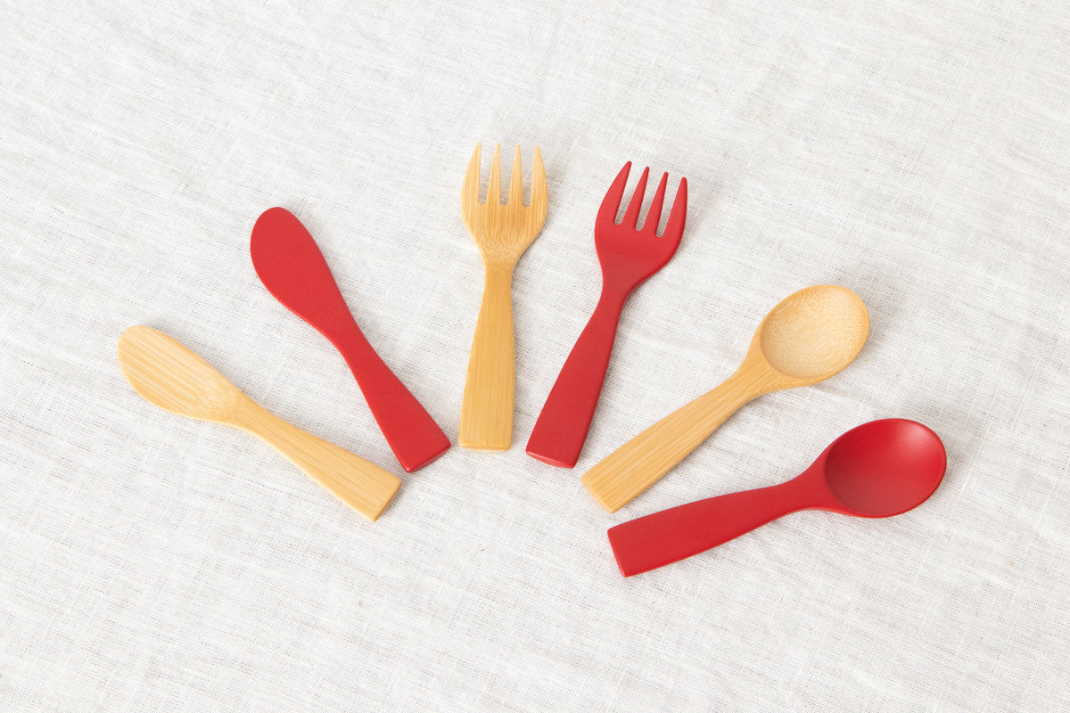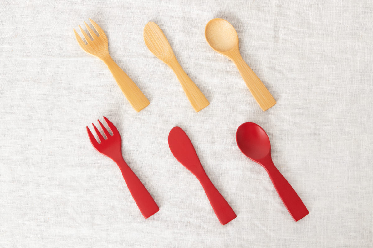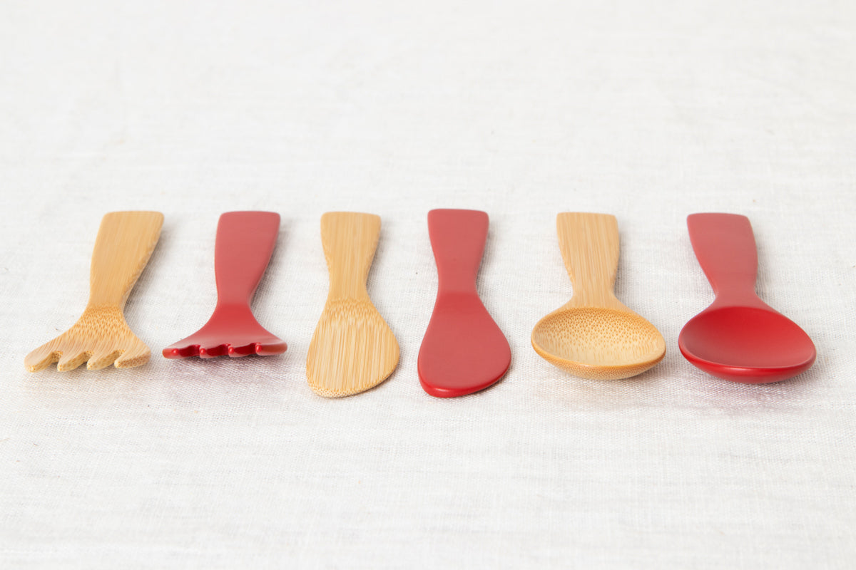 “Petit” Morning Fork, Knife, Spoon / [ Natural, Red ] / Mōsō bamboo / Ōita-JPN 211117