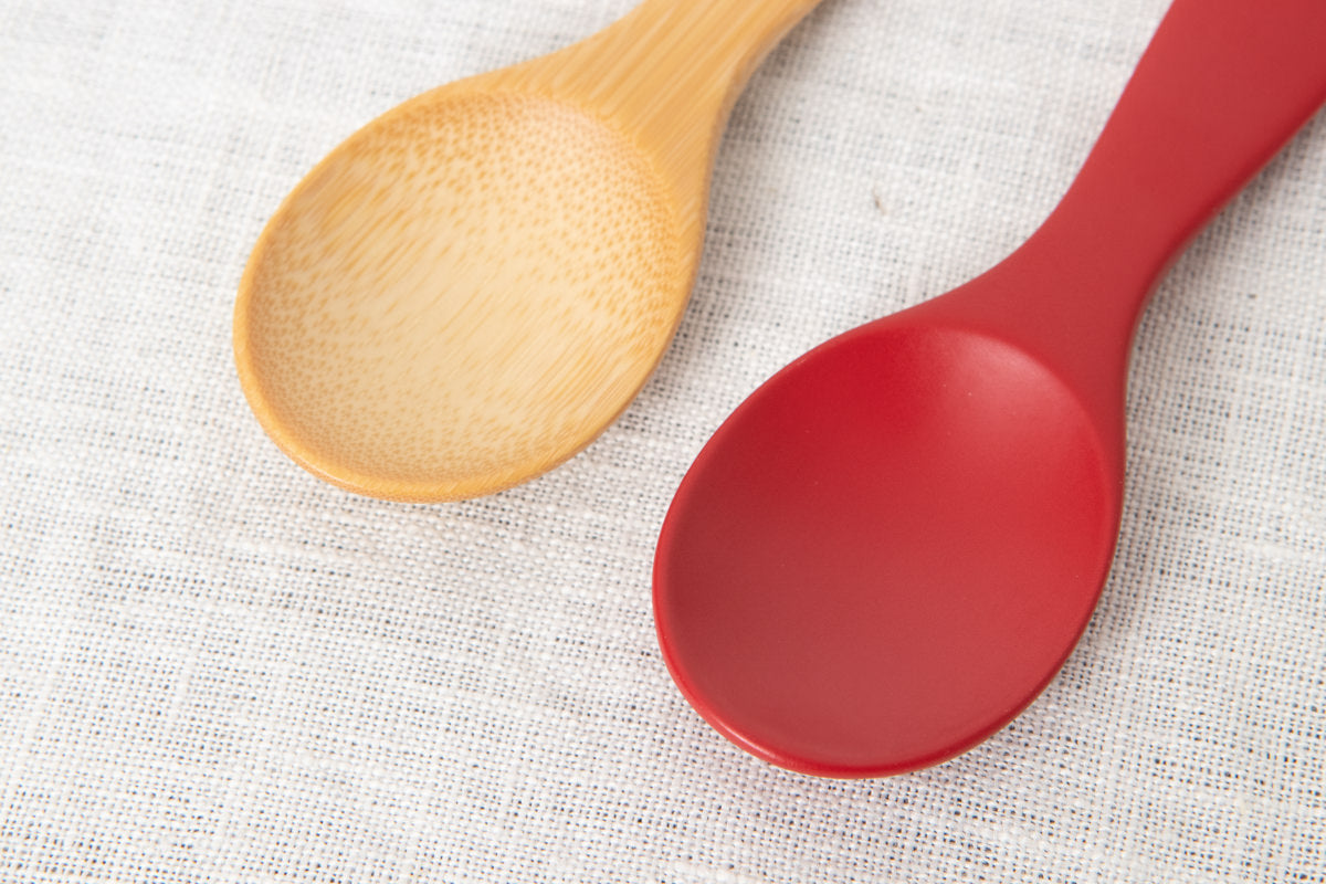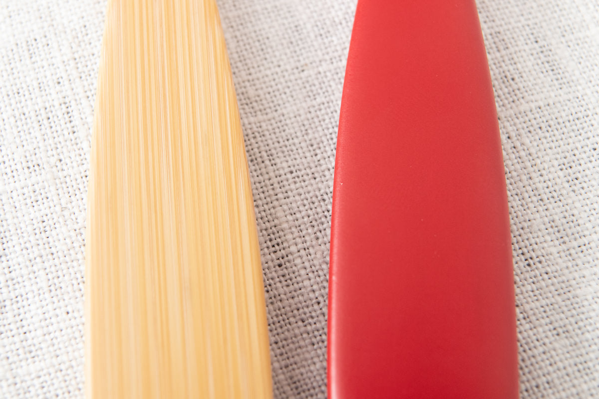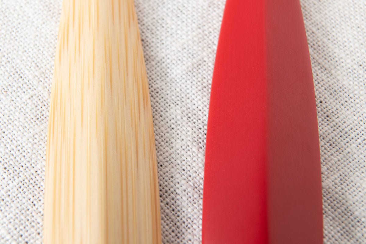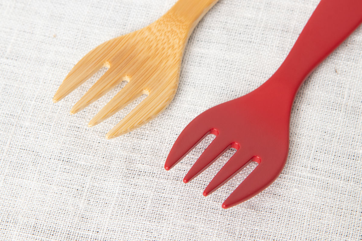 while the red has a texture not found in ordinary bamboo cutlery due to its clear color.