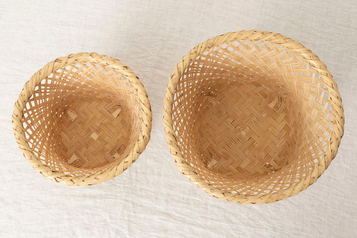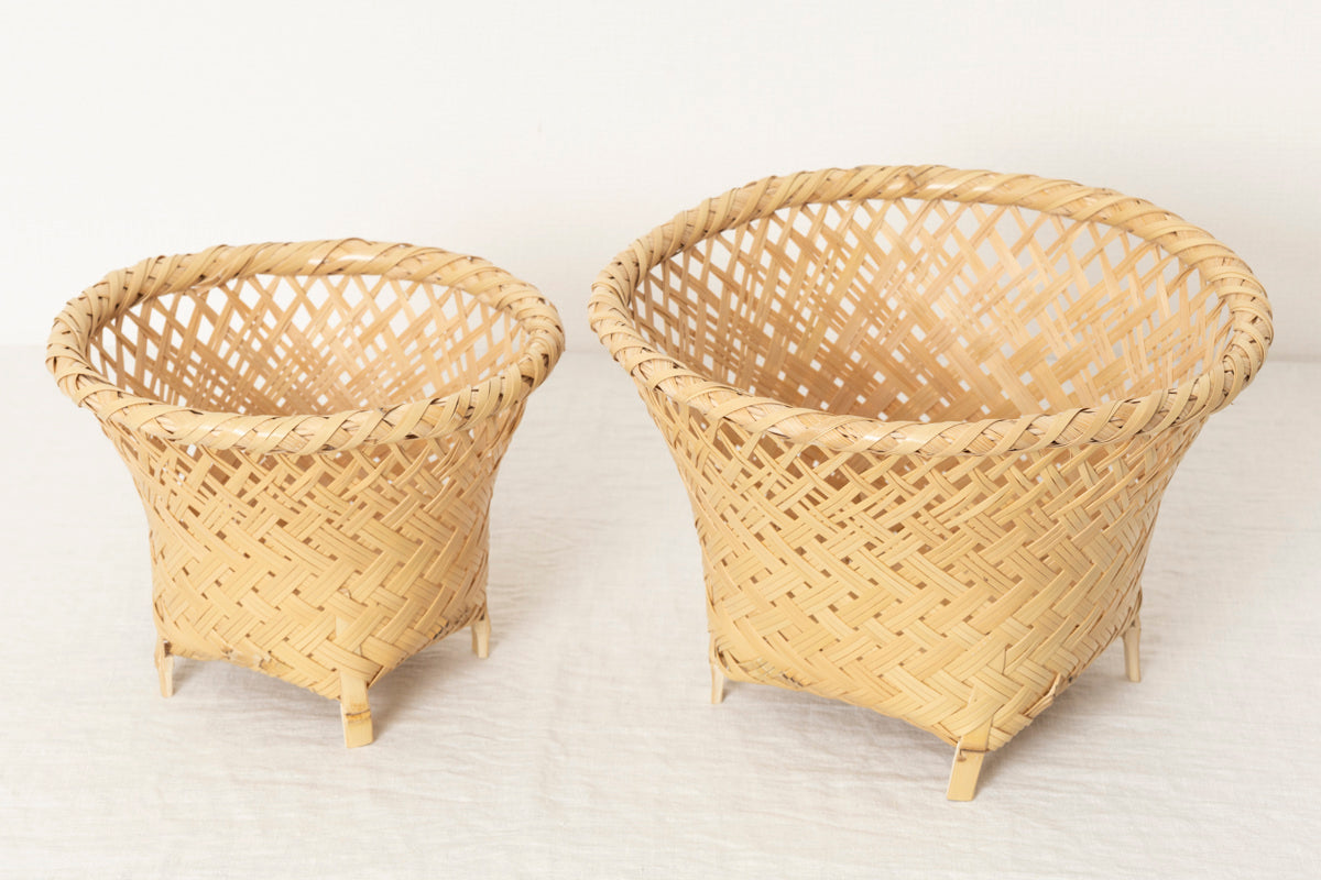 This page introduces the “Oriental” Footed Basket in two sizes: Small and Large.