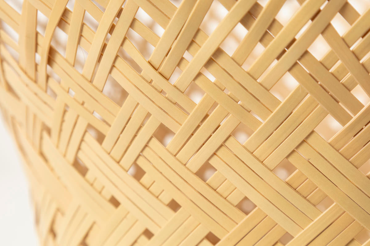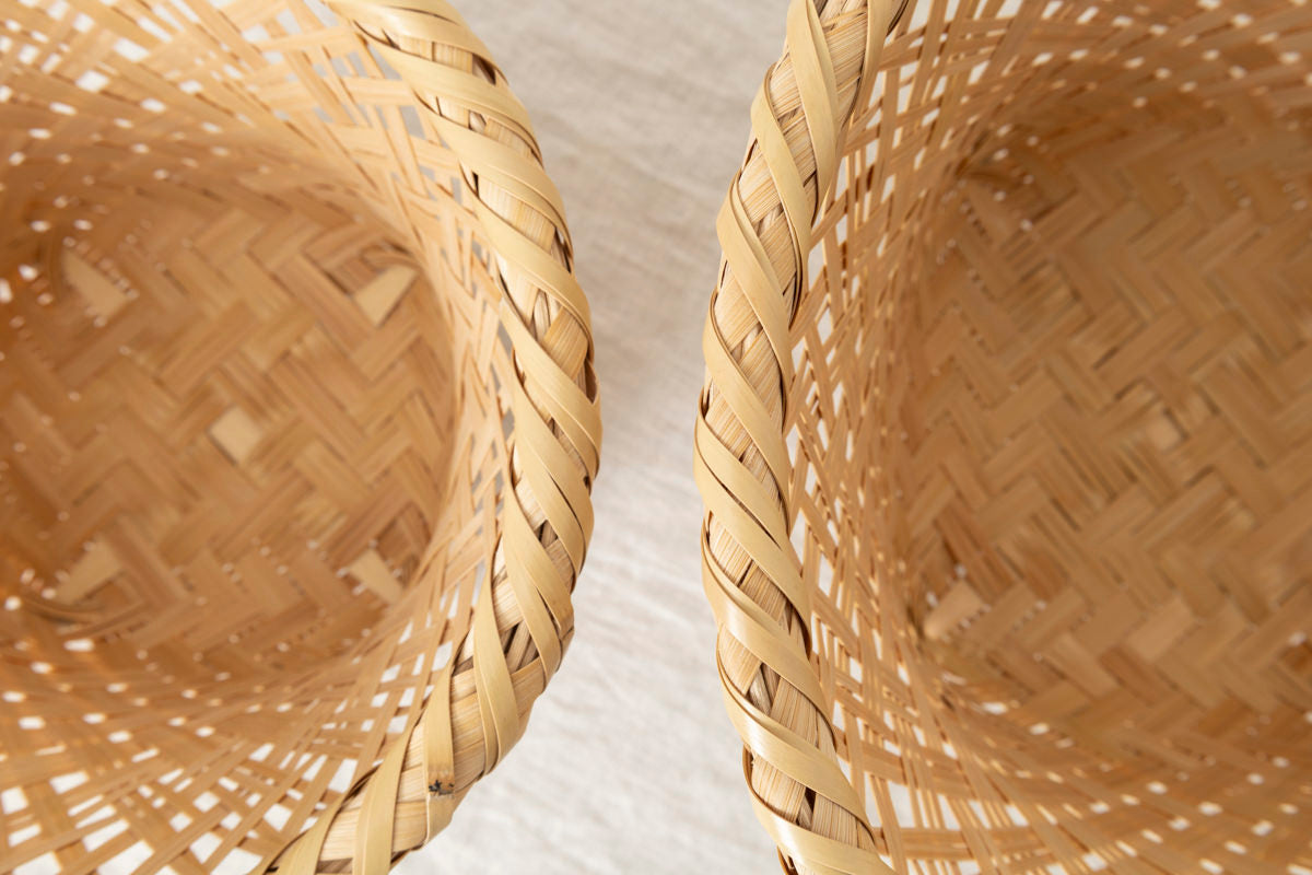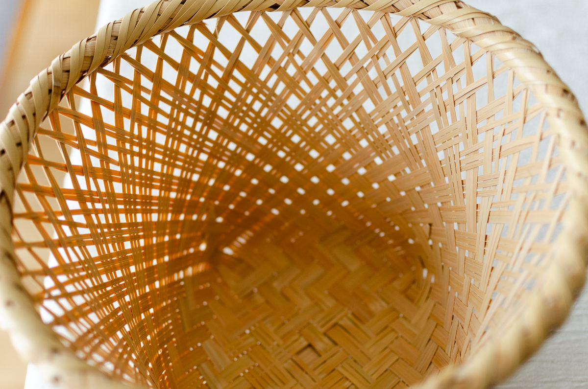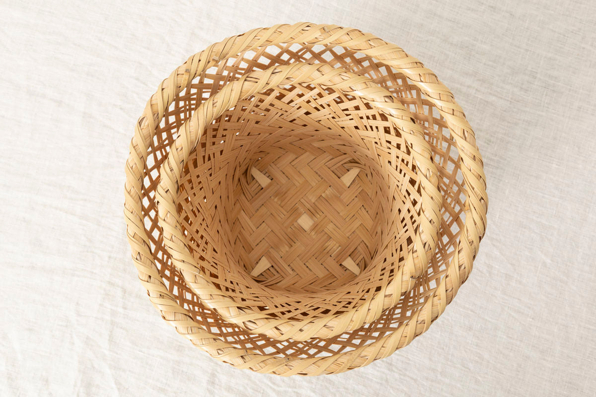 but in this piece, it is finished entirely with bamboo. It is wrapped in two layers—first with the softer inner fibers, and then a second time with the bamboo’s outer skin, in the opposite direction.