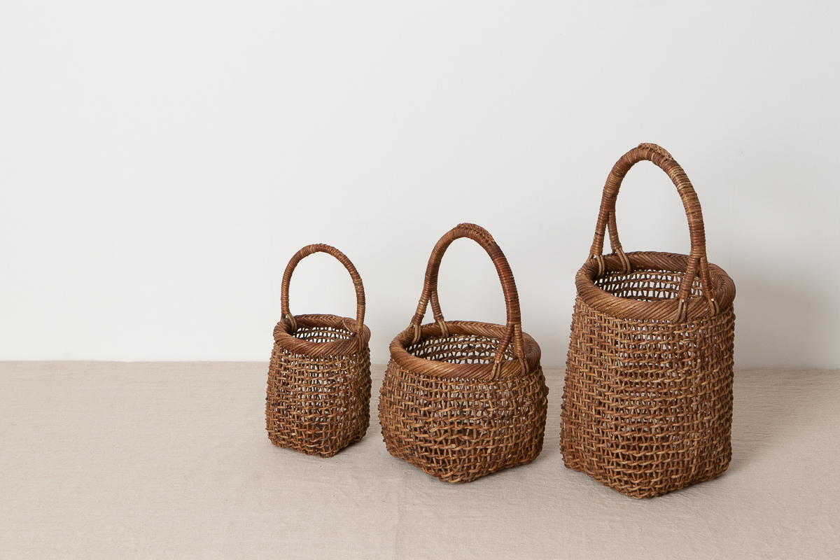 Handled Round Basket – Sukashi Weave / Akebi Vine / Nagano-JPN 311240