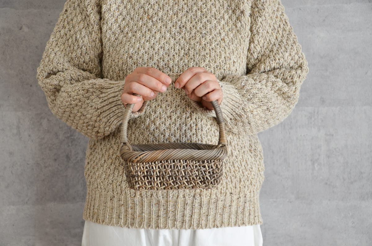 This is a basket of Gray Akebi vine, the outer skin of which is peeled using hot spring or river water.