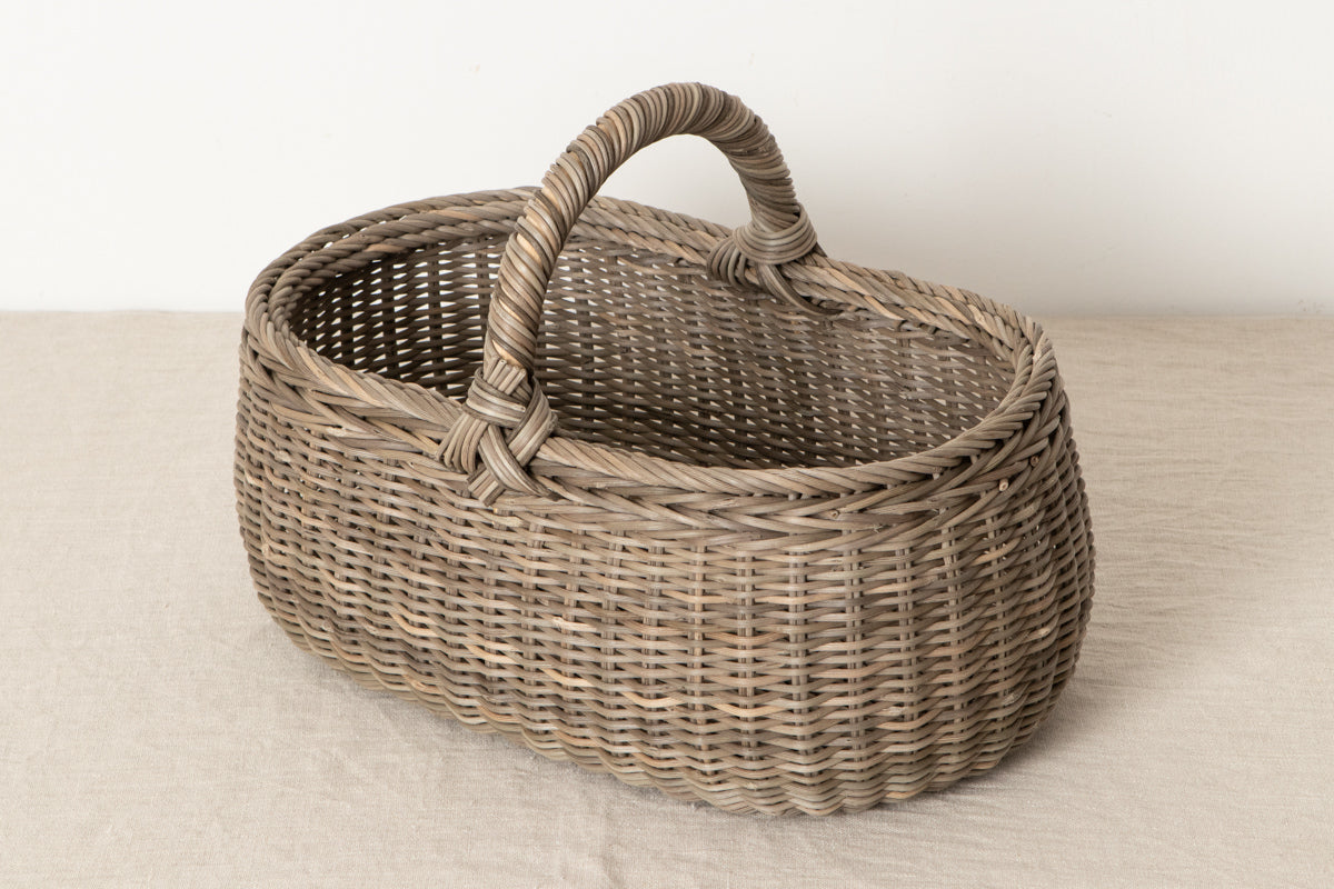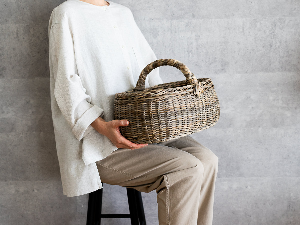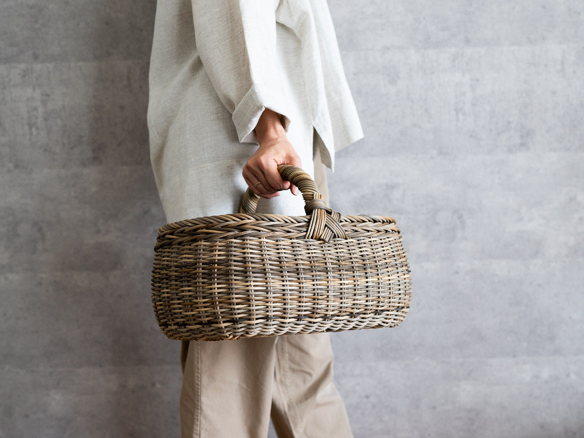 The basket on the left in the photo is the same shape, but made from bark-on Akebi vine.