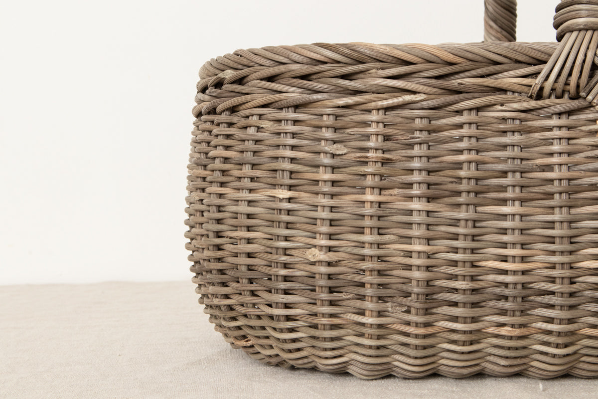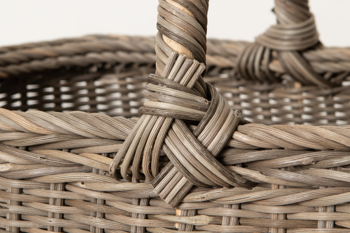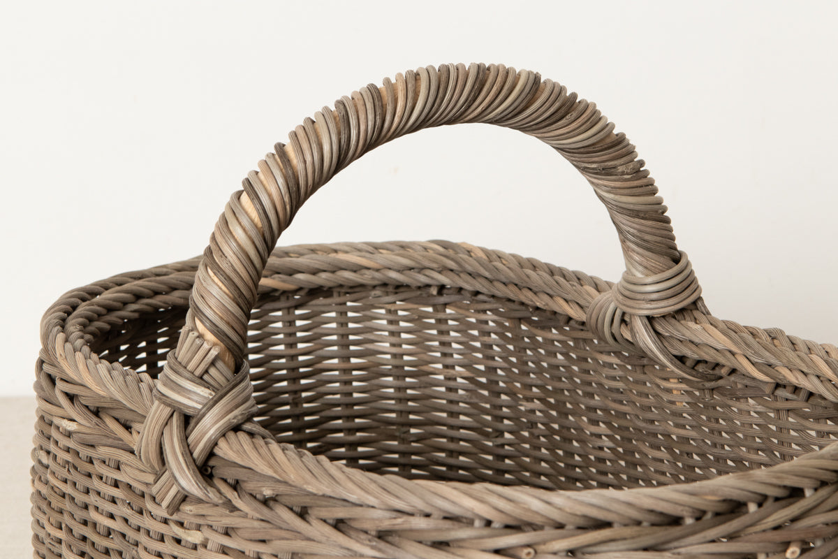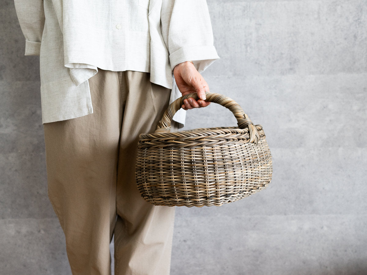 Baskets made from the brown Akebi vine with its bark intact have a rustic and earthy charm.