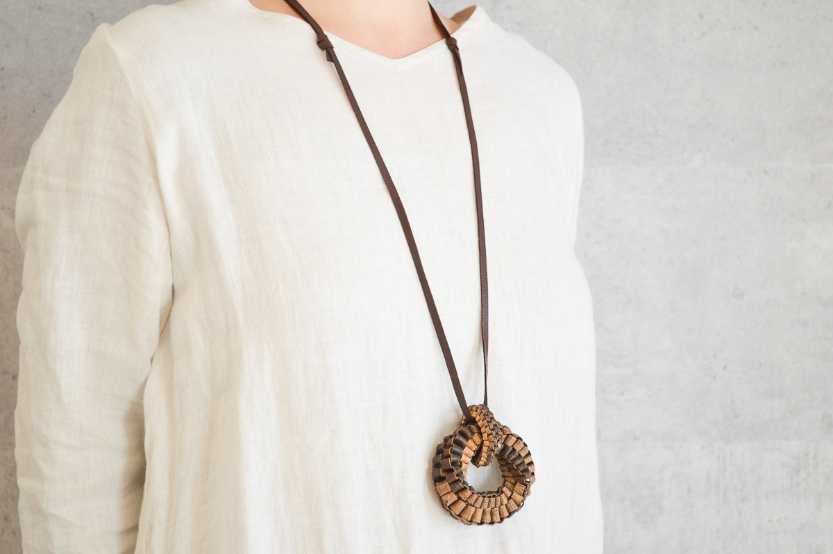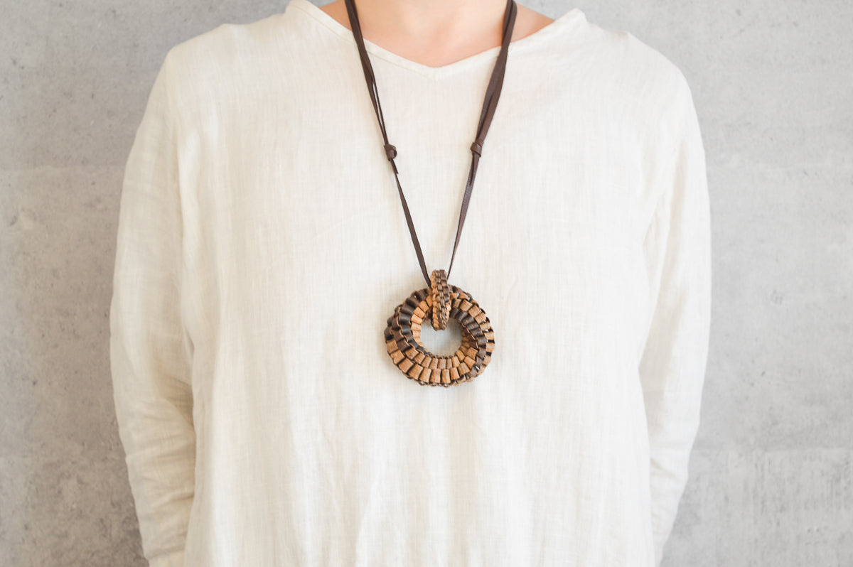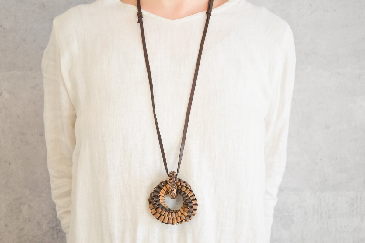 Pendant “Cobblestone Ring” / Walnut Bark / Yamagata-JPN 311418-1