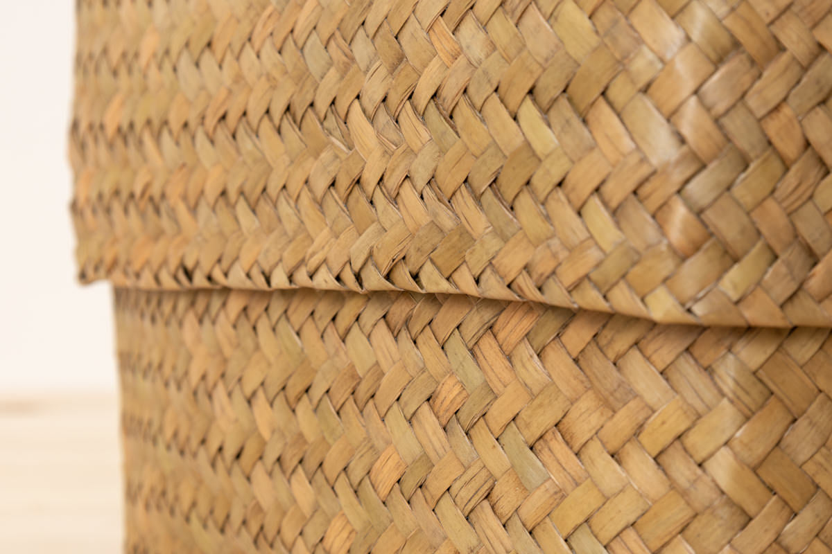 This basket is woven from Krajood, a type of grass that grows naturally around marshy areas in Thailand.