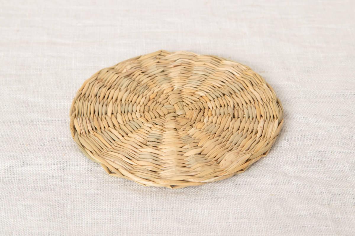 This coaster is woven from Kok, a type of grass that grows naturally around marshy areas in Thailand.