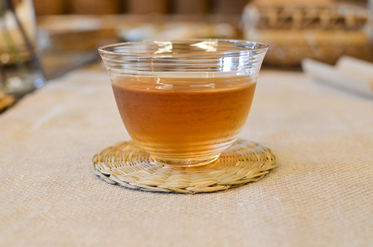 The smooth, dry texture of Kok offers a reliable surface beneath your cup.