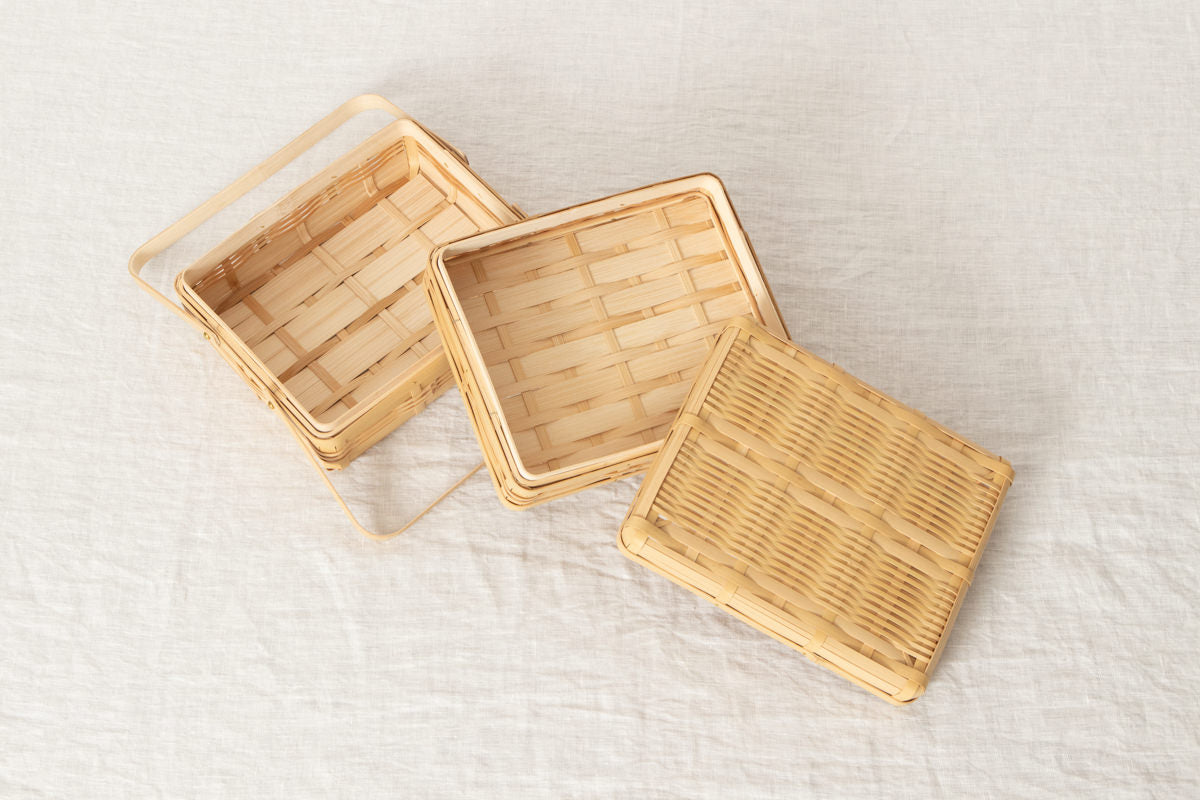 Handled Lunch Basket Medium 2-tier / White Bamboo / Kagoshima-JPN 321111-1