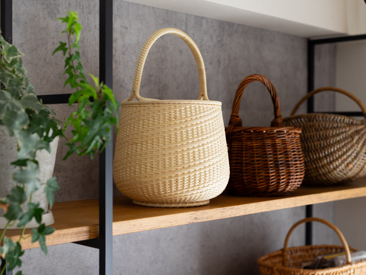 Fine Weave Round Basket “Spiral” / Willow / BEL 440303-1