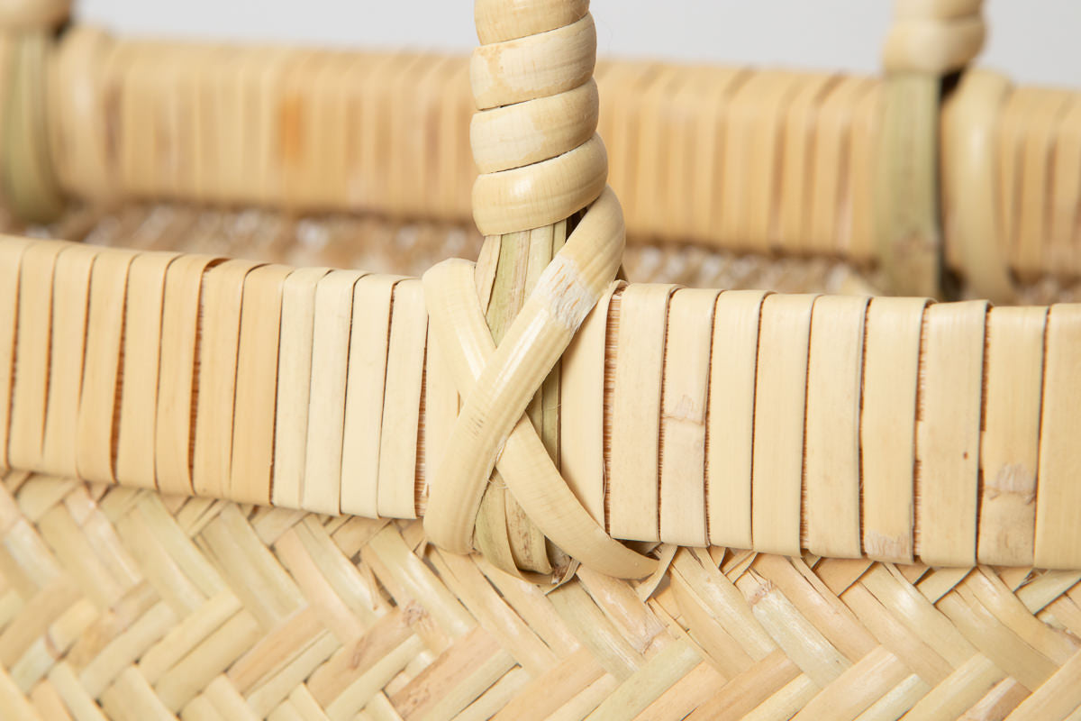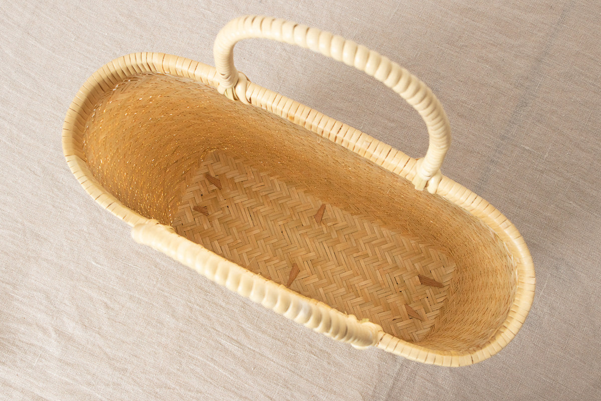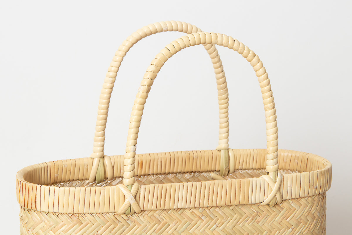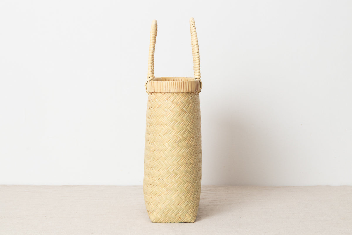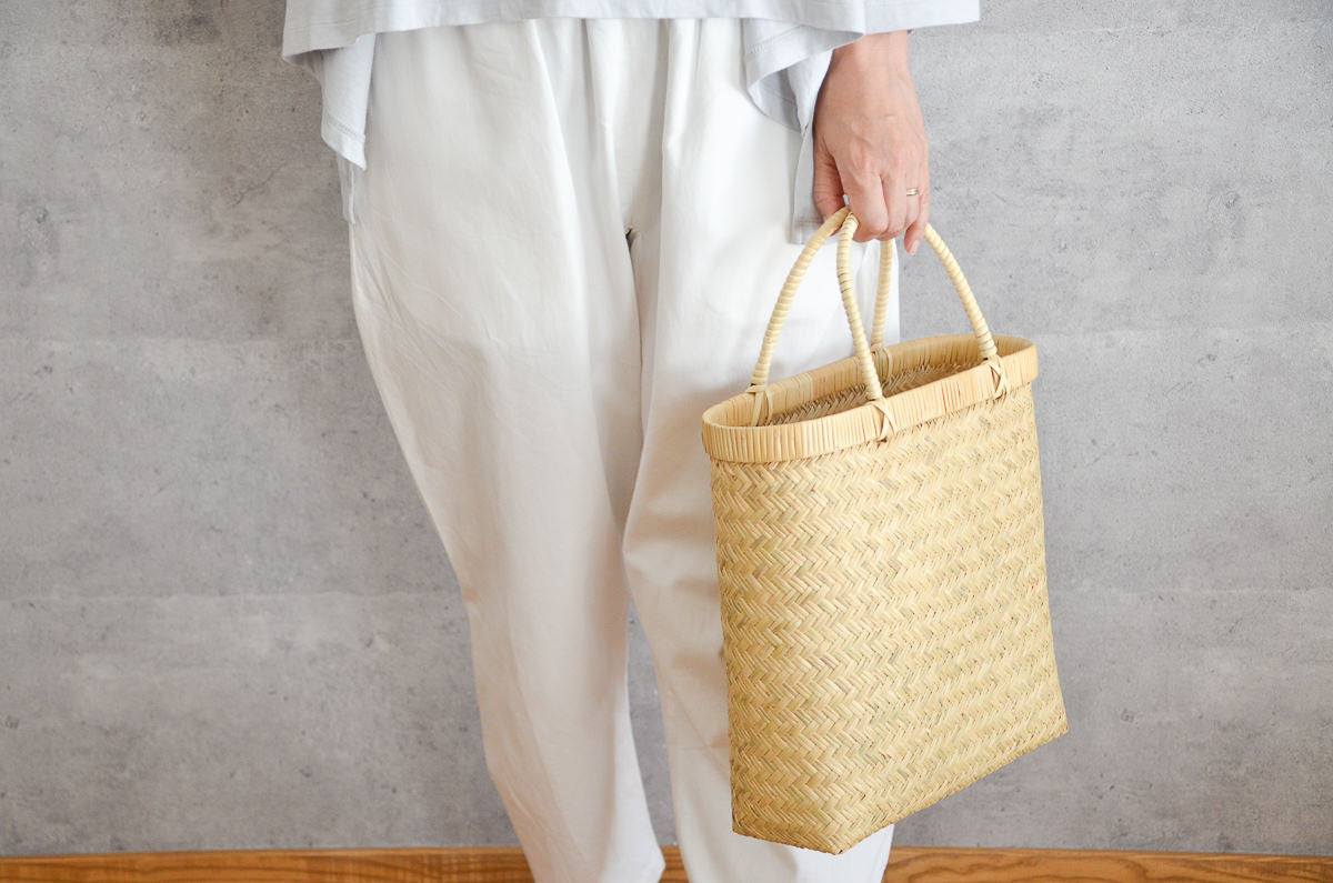 This is a tall handbag woven from Suzu bamboo.
