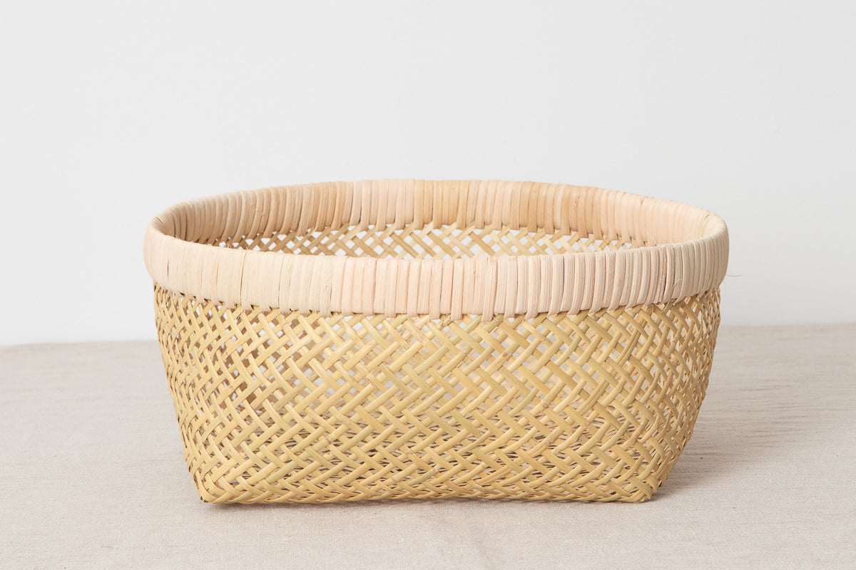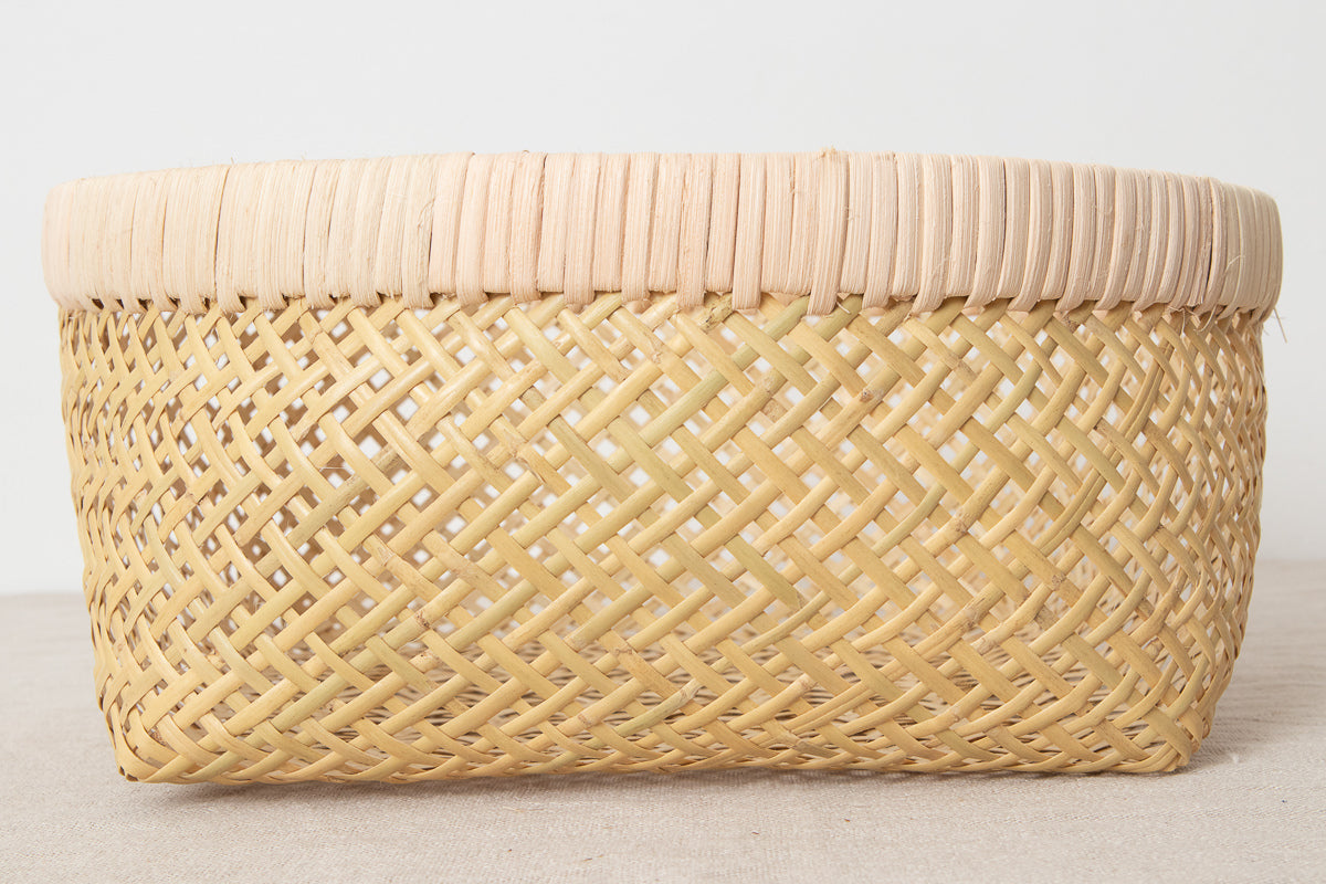 This is a basket handwoven from Suzutake bamboo.