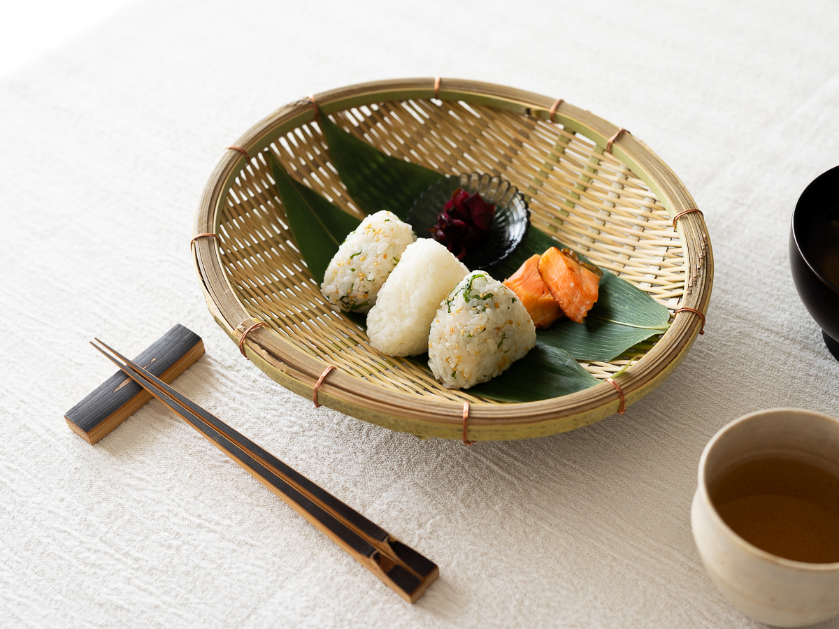 This is an oval colander that can be placed on the table and used like a plate for bread, rice balls, or noodles.